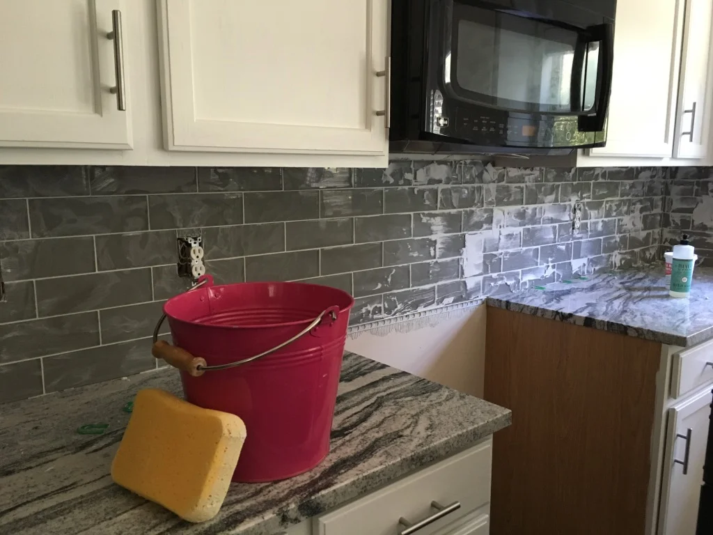 After that had a few hours to dry, it was grout time. I did this alone on my day off while J was at work, and it was a piece of cake.