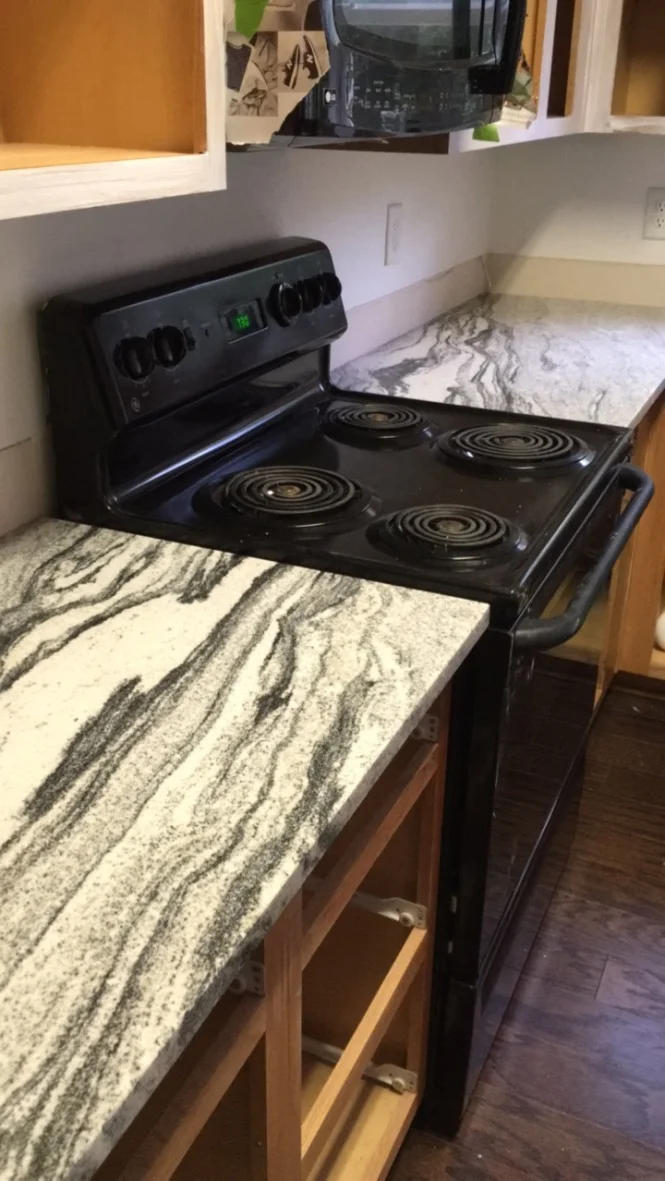 We started our kitchen update with new countertops for two reasons: