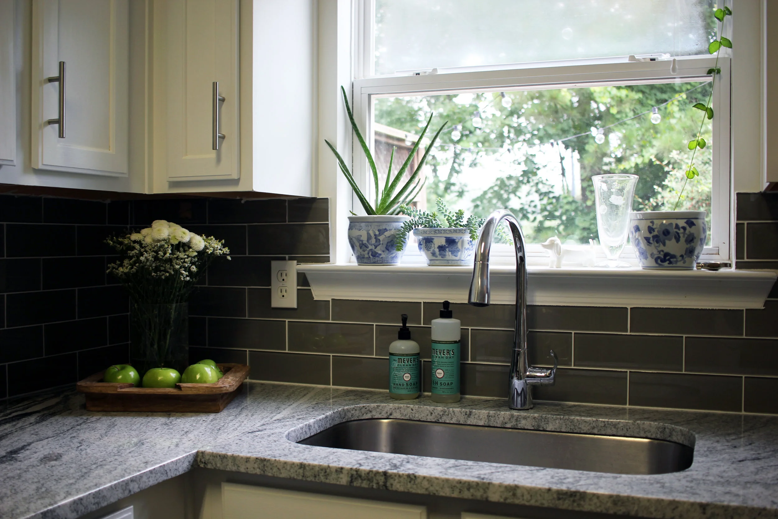 While painting the cabinets wins the award for longest kitchen project, the backsplash was by far the most work. But, it's also the one we're proudest of, and I love that it's one we worked on together.